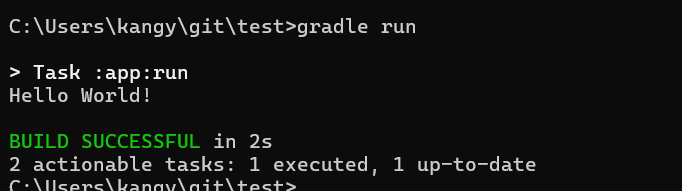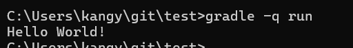 만약 다른 부연설명 없이 결과만 보고 싶다면, gradle -q run 명령을 내리면 된다. (quiet)