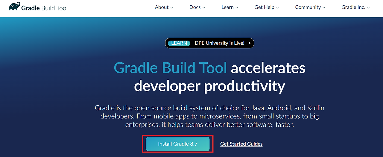 https://gradle.org 에서 Install Gradle 8.7 을 클릭한다.